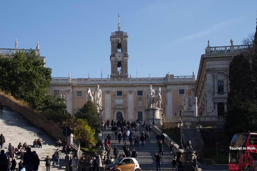 Der Konservatorenpalast befindet sich rechts von der Reiterstatue des Marc Aurel und beherbergt heute einen Großteil der Kapitolinischen Museen.